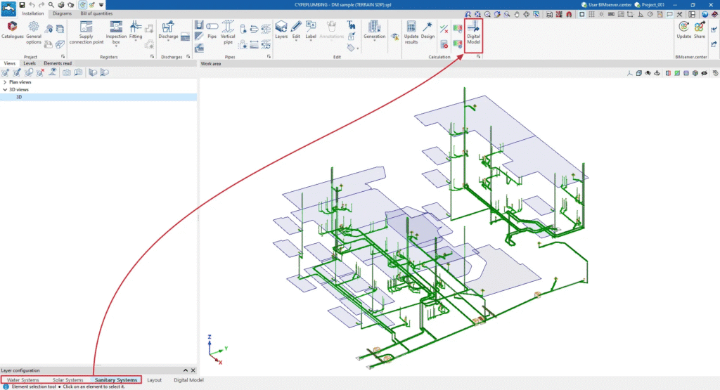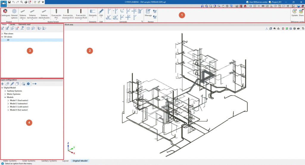 2026.b sürümü, tesisat sistemlerinin doğru bir şekilde modellenmesi için “Sıhhi Tesisat Sistemlerinin Ayrıntılı Modeli” adlı MDC modülünü içerir. Bu araç, sistemlerin eksiksiz bir dökümünü sunarak hidrolik tasarımı, sistemin grafiksel gösterimini ve projeyle ilgili miktar ve maliyetlerin elde edilmesini kolaylaştırır.