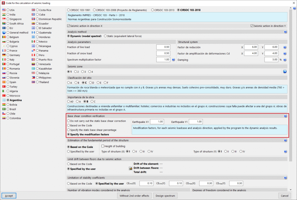 CYPECAD’de, taban kesme kuvvetlerindeki artışın kullanıcı kriterleri ile dikkate alınması seçeneği tüm deprem yönetmeliklerine eklenerek uluslararası projelerde daha fazla esneklik sağlanmıştır.