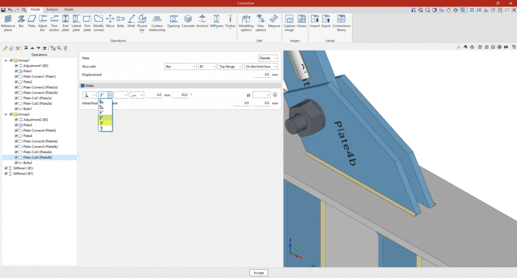 Seçilen standarda uygun olarak StruBIM Steel ve CYPE Connect’te kaynak doğrulaması, köşe kaynaklarının yanı sıra kısmi penetrasyon kaynaklarını da kapsayacak şekilde genişletilmiştir.