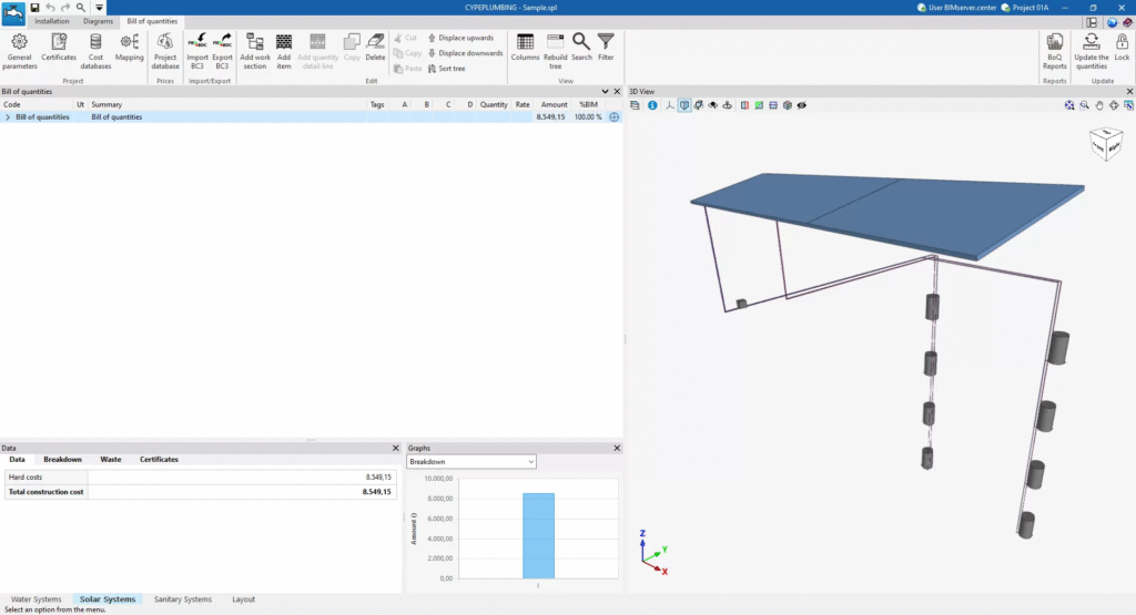 CYPEPLUMBING “SOLAR SYSTEMS” sekmesi çalışma ortamı