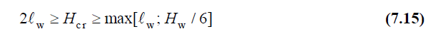 7.6.2.2 – Temel üstünden veya perdenin plandaki uzunluğunun %20’den daha fazla küçüldüğü seviyeden itibaren kritik perde yüksekliği, w 2 değerini aşmamak üzere, Denk.(7.15)’de verilen koşulların elverişsiz olanını sağlayacak biçimde belirlenecektir.