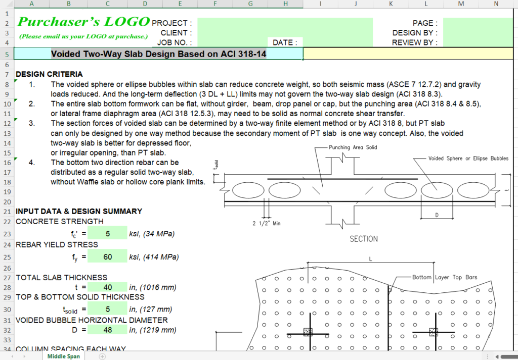 Türkiye Bina Deprem Yönetmeliği 2018′ de eklenen Kirişsiz Döşemeler içinde bir kaynak olabilecek Amerikan ACI 318-14 şartnamesine göre hazırlanmış olan Boşluklu Kirişsiz döşemlerin excel ile çözümü.